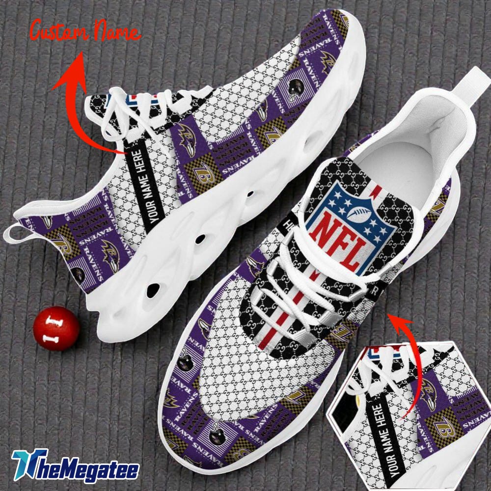 Custom Name Baltimore Ravens Logo Pattern Max Soul Shoes For Fans Details