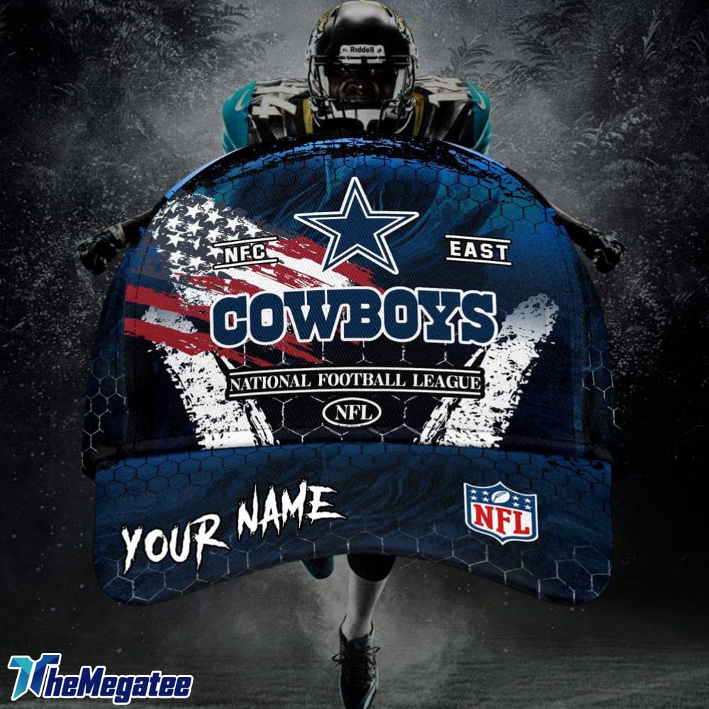 Custom Name Dallas Cowboys NFL Dark Scratch American Flag Baseball Cap details