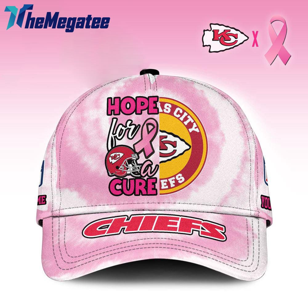 Show your support for Breast Cancer Awareness Month with this stylish Kansas City Chiefs baseball cap! Made from high-quality materials, this cap features the iconic Chiefs logo along with a special pink ribbon design to promote breast cancer awareness. Not only will you be showing your team spirit, but you'll also be spreading awareness for an important cause. With a customizable option to add your name, this cap becomes a unique and personal statement piece. Whether you're heading to the game or just out and about, this cap is the perfect way to make a statement and show your support.