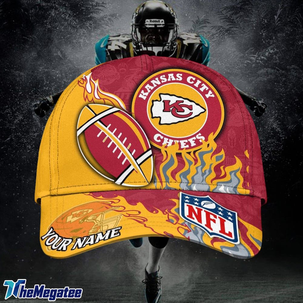 Custom Name Kansas City Chiefs NFL Dark Flame Classic Baseball Cap details
