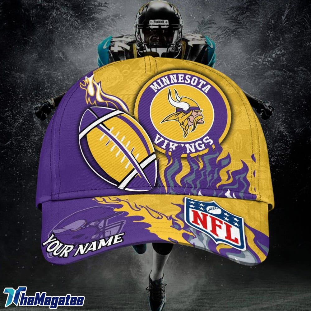 Custom Name Minnesota Vikings NFL Dark Flame Classic Baseball Cap details