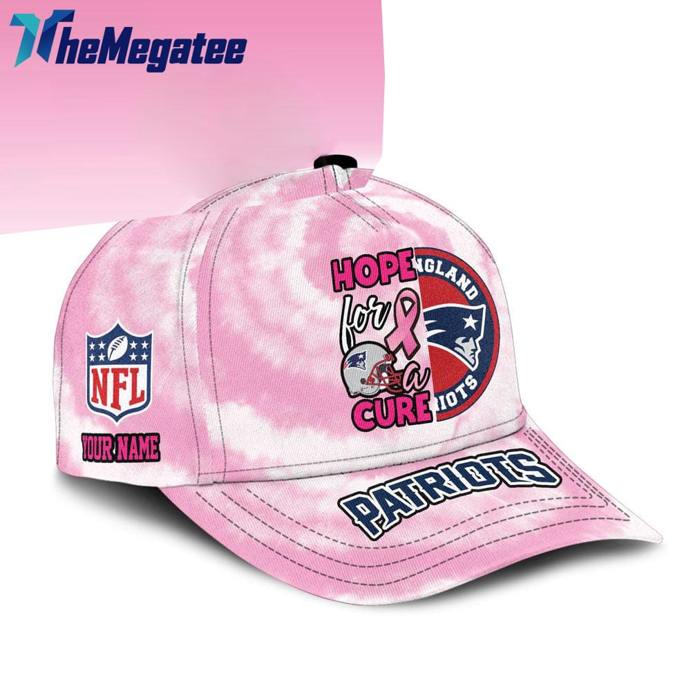 Show your support for breast cancer awareness in style with this exclusive New England Patriots baseball cap. Made with high-quality materials and featuring the iconic team logo, this cap is not only a fashion statement but also a statement of solidarity with those fighting breast cancer. The customizable aspect of this product allows you to add a personal touch, making it a unique accessory for any Patriots fan. Whether you're heading to a game or just out for a casual day, this baseball cap is the perfect way to show your team pride and support a worthy cause. Join the fight against breast cancer with this one-of-a-kind accessory.
