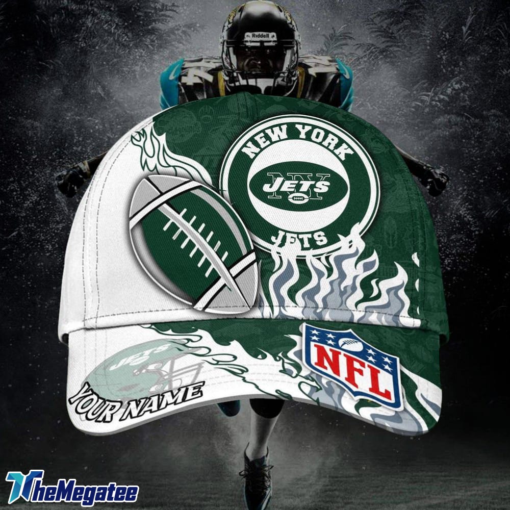Custom Name New York Jets NFL Dark Flame Classic Baseball Cap