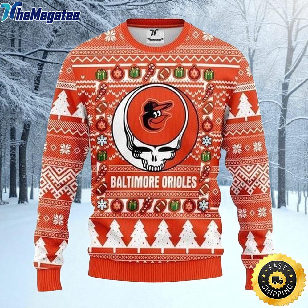 MLB Baltimore Orioles Ugly Christmas Sweater The Intelligence Of The , Skull Christmas Sweater Details