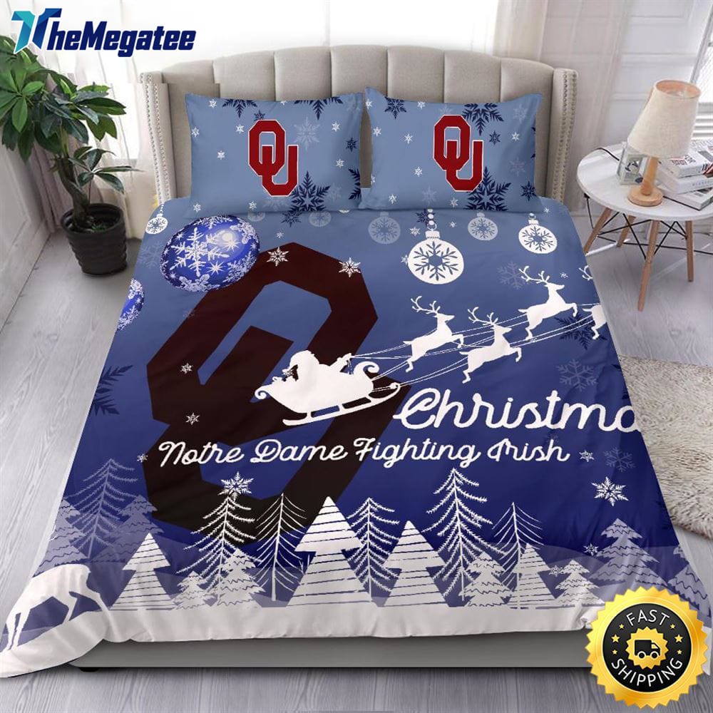 NCAA Oklahoma Sooners Bedding Sets Santa Claus Sleigh And Reindeer Christmas Quilt Bedding Sets 2025