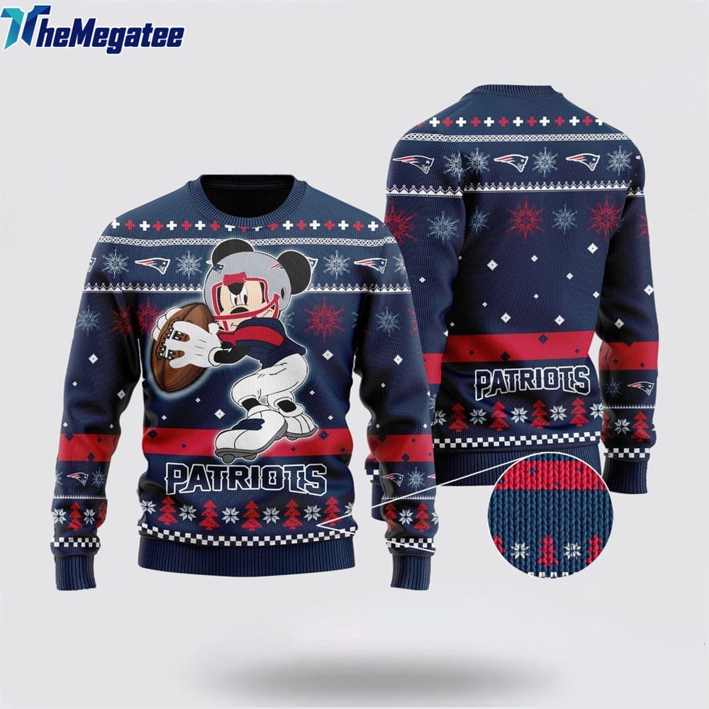 New England Patriots Ugly Christmas Sweater Mickey Mouse, Christmas Gift For NFL Fans Details