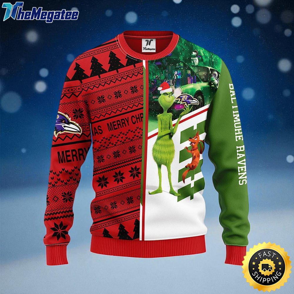 NFL Baltimore Ravens Ugly Sweater Grinch & Scooby Doo Ugly Christmas Sweater For Fans Details