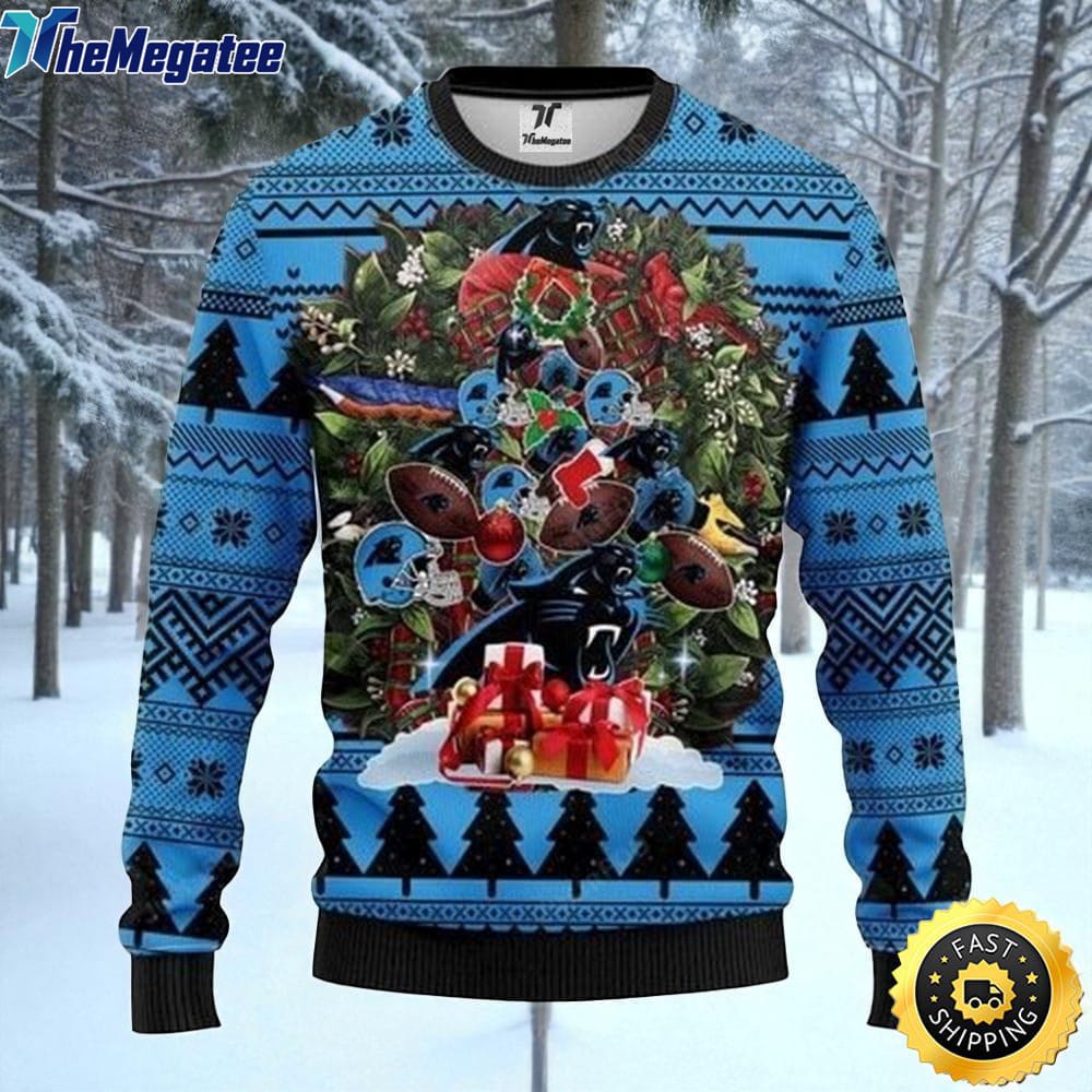 NFL Carolina Panthers Ugly Christmas Sweater Tree, NFL Christmas Sweater Details