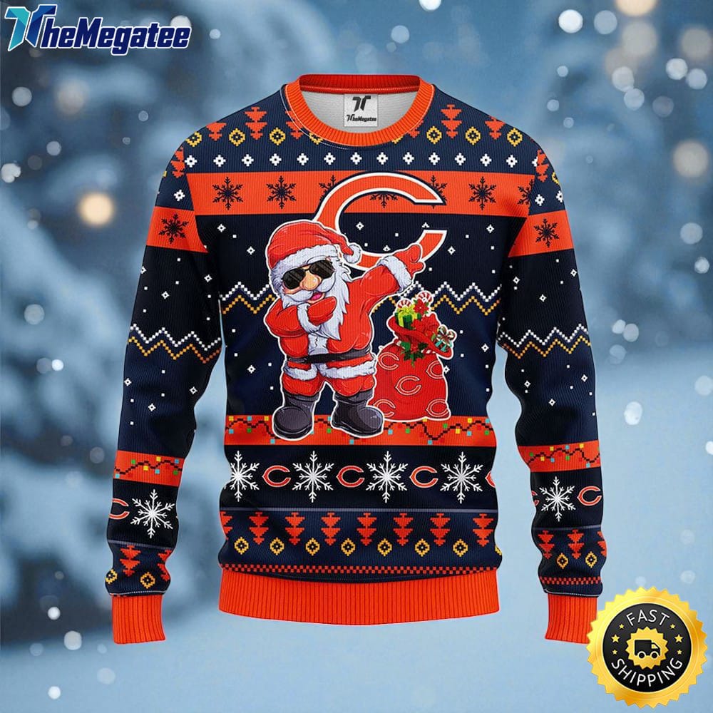 Get ready to spread some holiday cheer with the ultimate Christmas sweater for Chicago Bears fans! This festive sweater features Santa Claus rocking the iconic Bears colors and logo, making it the perfect way to show off your team spirit during the holiday season. Whether you're heading to a holiday party or just want to stand out at your next game day tailgate, this sweater is sure to turn heads and get everyone in the holiday spirit. With its cozy knit fabric and eye-catching design, this sweater is a must-have for any die-hard Bears fan looking to celebrate the most wonderful time of the year in style. Don't miss out on the chance to make a jolly statement with this fun and festive sweater!