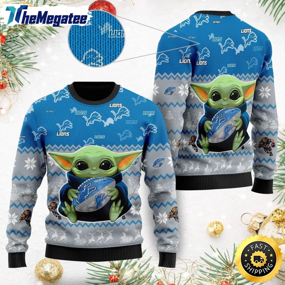 NFL Detroit Lions Ugly Christmas Sweater, Baby Yoda Sweater for Christmas 2025