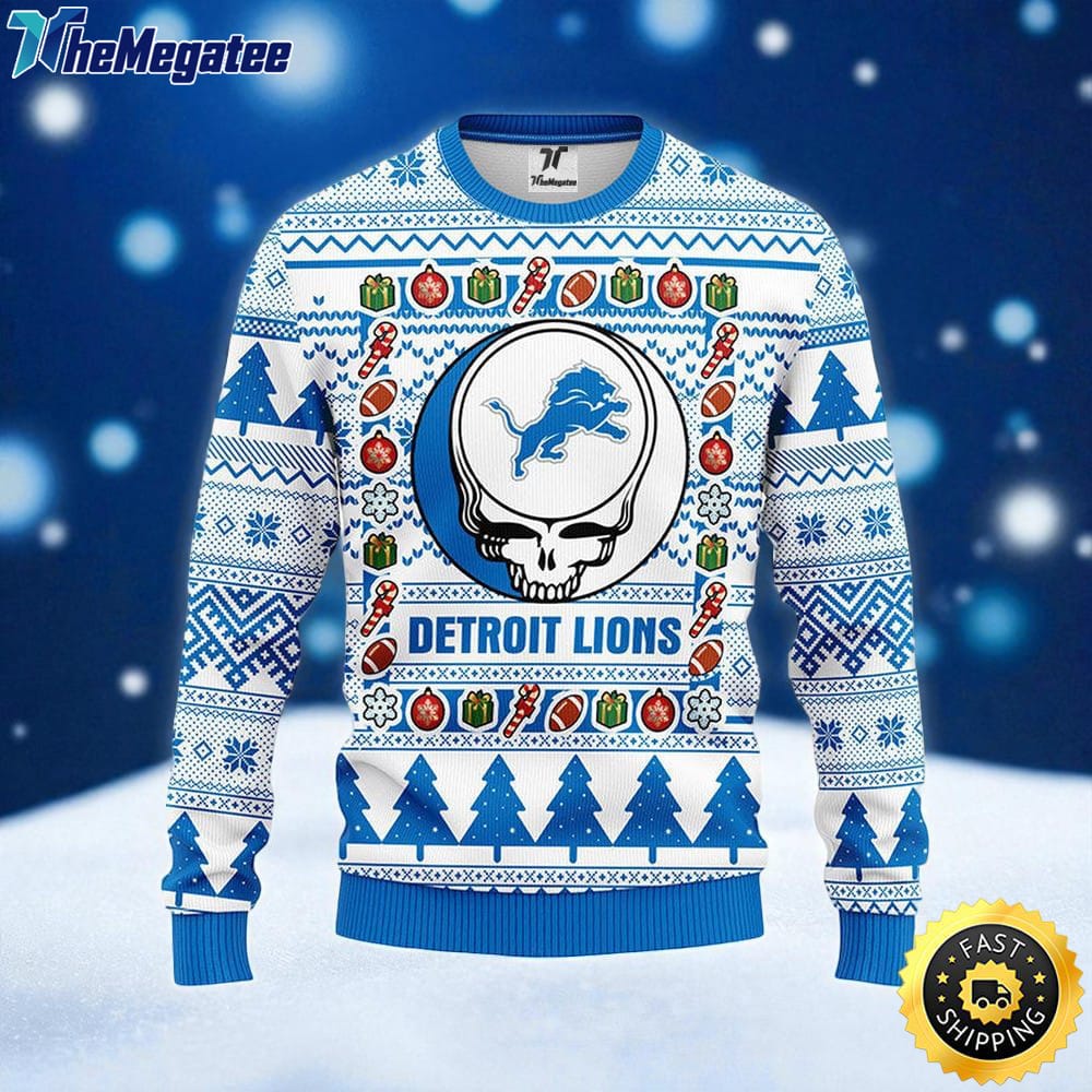 NFL Detroit Lions Ugly Sweater Grateful Dead Ugly Christmas Fleece Sweater For Fans Details