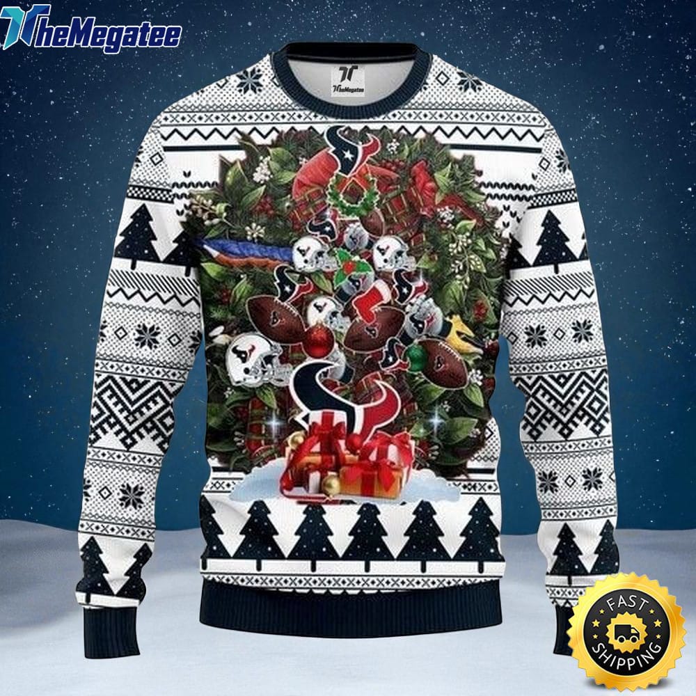 Get ready to sleigh the holiday season with the ultimate festive fashion statement – the NFL Houston Texans Ugly Christmas Sweater Tree! This eye-catching sweater combines your love for the Houston Texans with the festive spirit of Christmas, creating the perfect look for any football fan. Featuring a fun and unique design that includes a tree adorned with team logos and colors, this sweater is sure to stand out at any holiday party or gathering. Made with high-quality materials, it is as comfortable as it is stylish, making it the perfect addition to your winter wardrobe. Show off your team pride in style this holiday season with the NFL Houston Texans Ugly Christmas Sweater Tree!