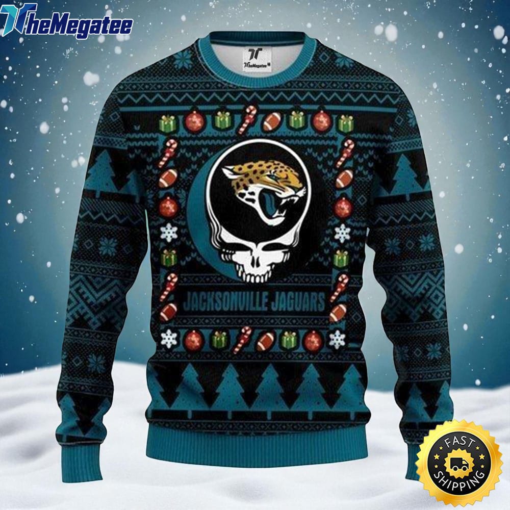 NFL Jacksonville Jaguars Ugly Christmas Sweater The Intelligence Of The Skull Unisex Sweater Details