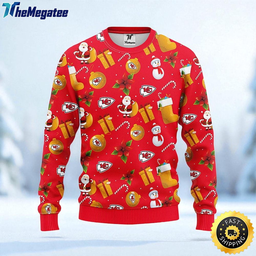 NFL Kansas City Chiefs Ugly Sweater Santa Claus Snowman Ugly Christmas Sweater For Fans Details
