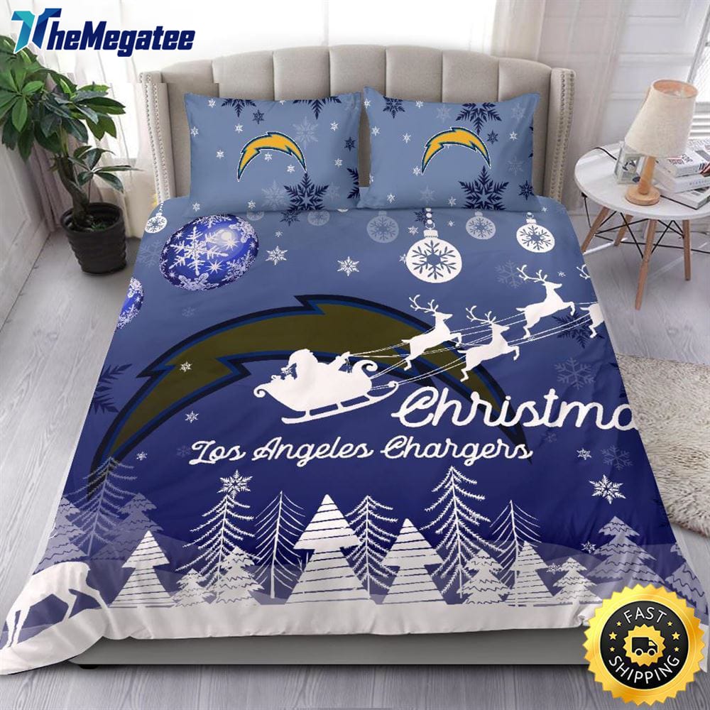NFL Los Angeles Chargers Bedding Sets Santa Claus Sleigh And Reindeer Christmas Quilt Bedding Sets 2025 Details