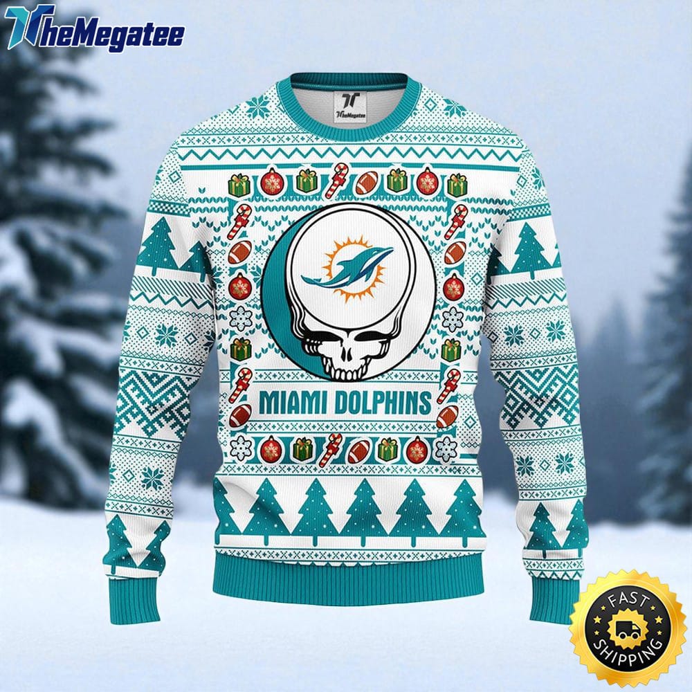 NFL Miami Dolphins Ugly Sweater Grateful Dead Ugly Christmas Fleece Sweater For Fans Details