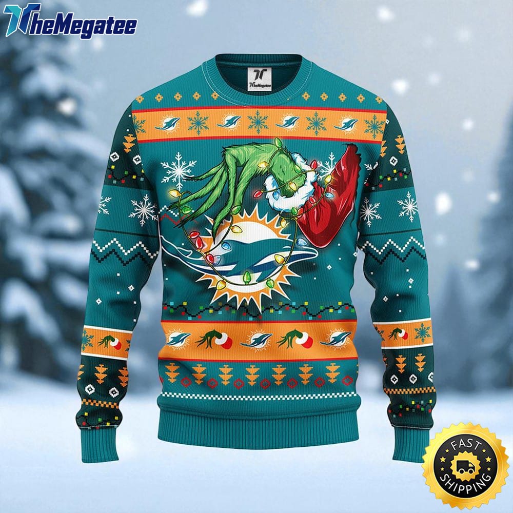 NFL Miami Dolphins Ugly Sweater The Hand Of Grinch Ugly Christmas Sweater For Fans Details