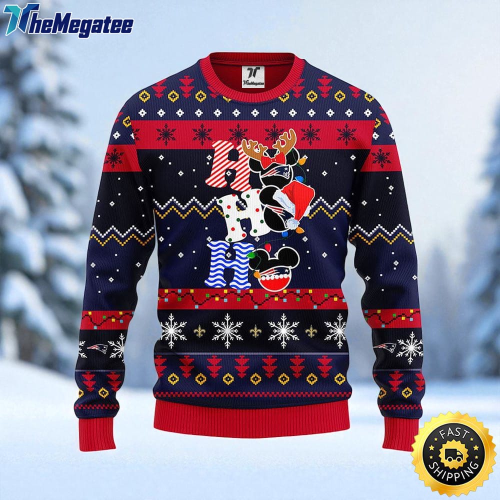 NFL New England Patriots Ugly Sweater HoHoHo Mickey Ugly Christmas Sweater For Fans Details