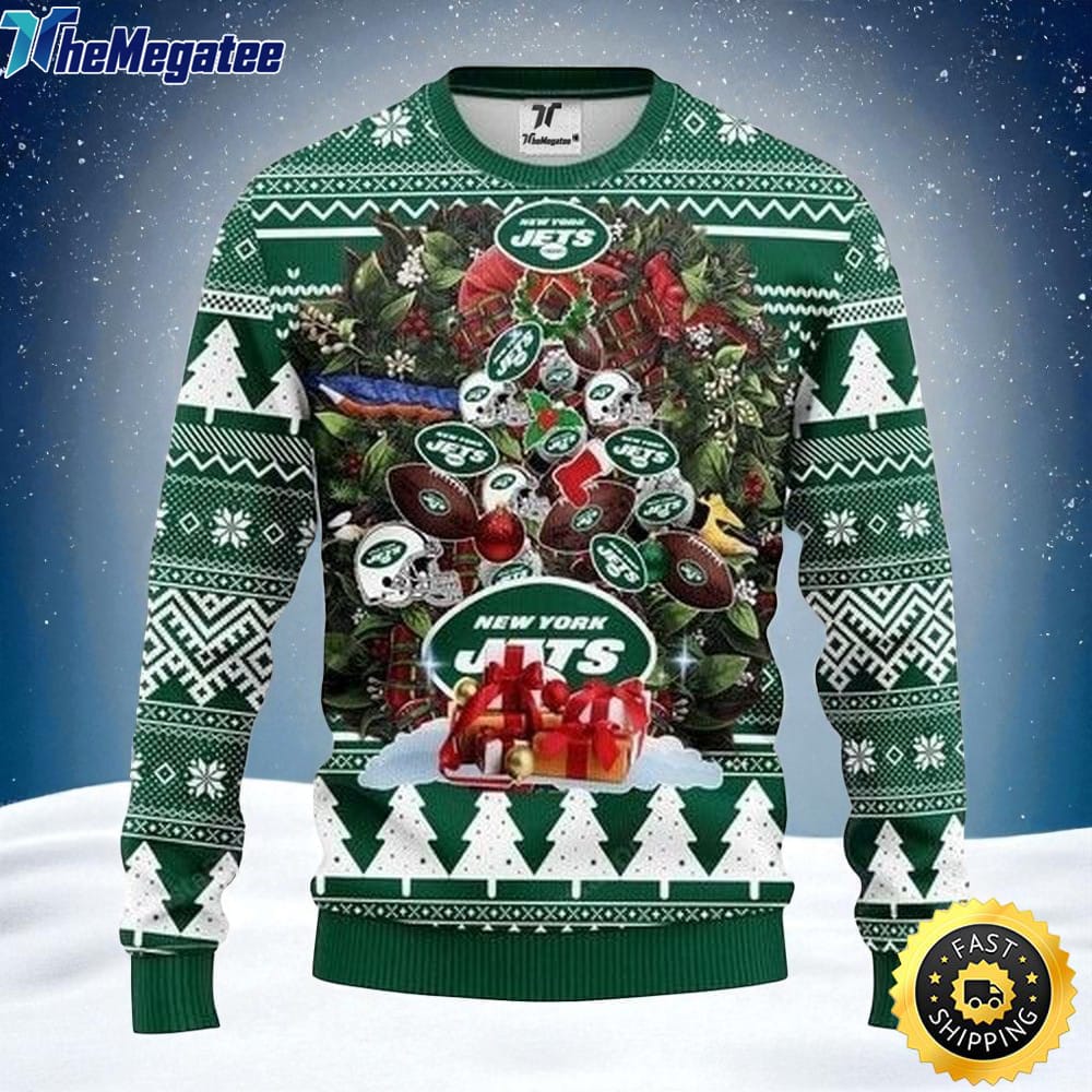 Get ready to show off your team spirit in style with the NFL New York Jets Ugly Christmas Sweater Tree! This festive sweater is the perfect addition to your holiday wardrobe, combining your love for the New York Jets with the fun and whimsy of Christmas. The colorful design features a unique tree pattern made up of football helmets, footballs, and the iconic Jets logo, making it a standout piece for any holiday gathering. Made with high-quality materials, this sweater is not only cozy and comfortable, but also durable enough to last for many holiday seasons to come. Don't miss out on the chance to spread some holiday cheer while representing your favorite NFL team with this fun and festive sweater. Order yours today and get ready to sleigh in style!