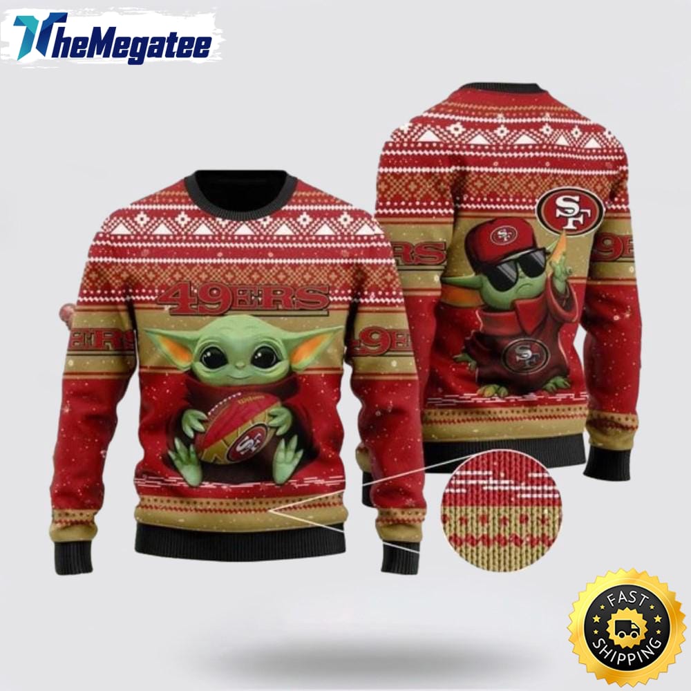 NFL San Francisco 49Ers Christmas Ugly Christmas Sweater Baby Yoda 3D Sweater Details