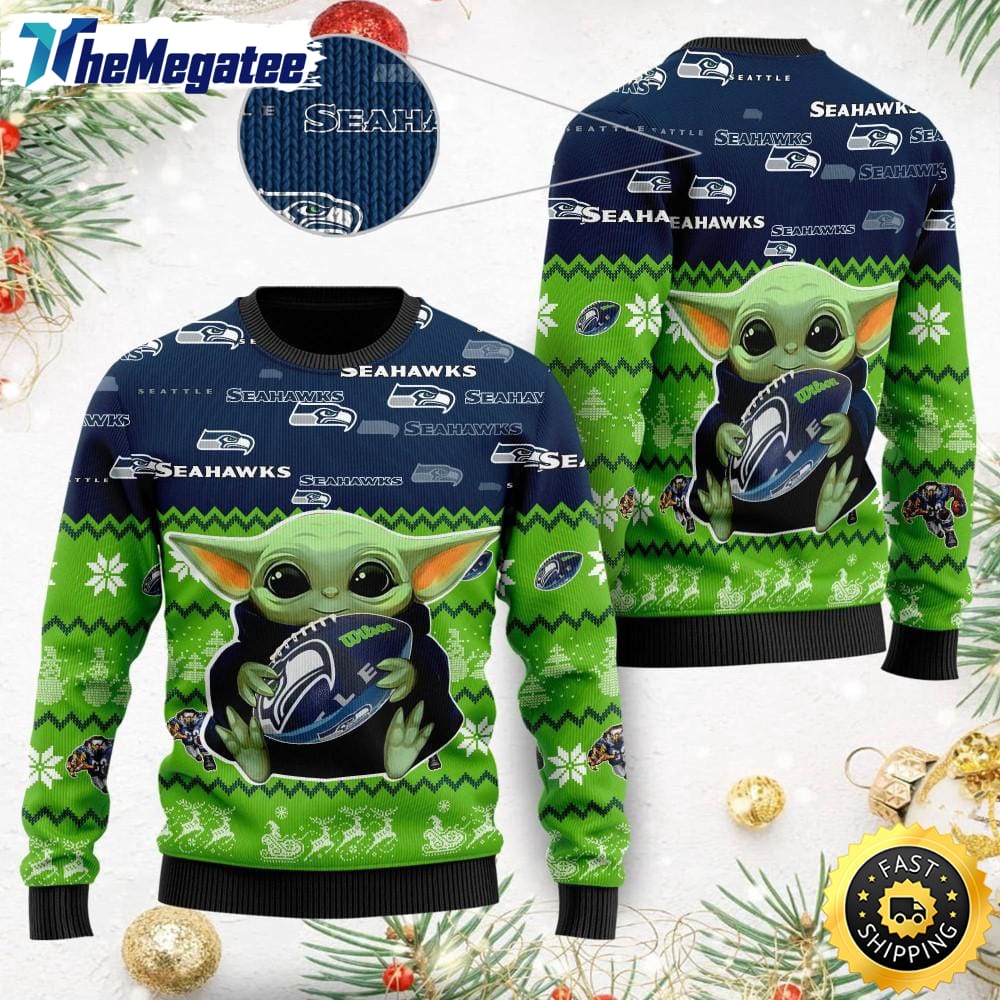 NFL Seattle Seahawks Ugly Christmas Sweater, Baby Yoda Sweater for Christmas 2025