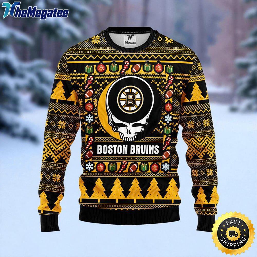 NHL Boston Bruins Ugly Sweater Grateful Dead Ugly Christmas Fleece Sweater For Fans Details