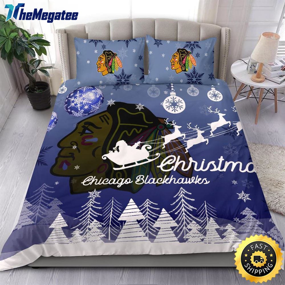 NHL Chicago Blackhawks Bedding Sets Santa Claus Sleigh And Reindeer Christmas Quilt Bedding Sets 2025 Details