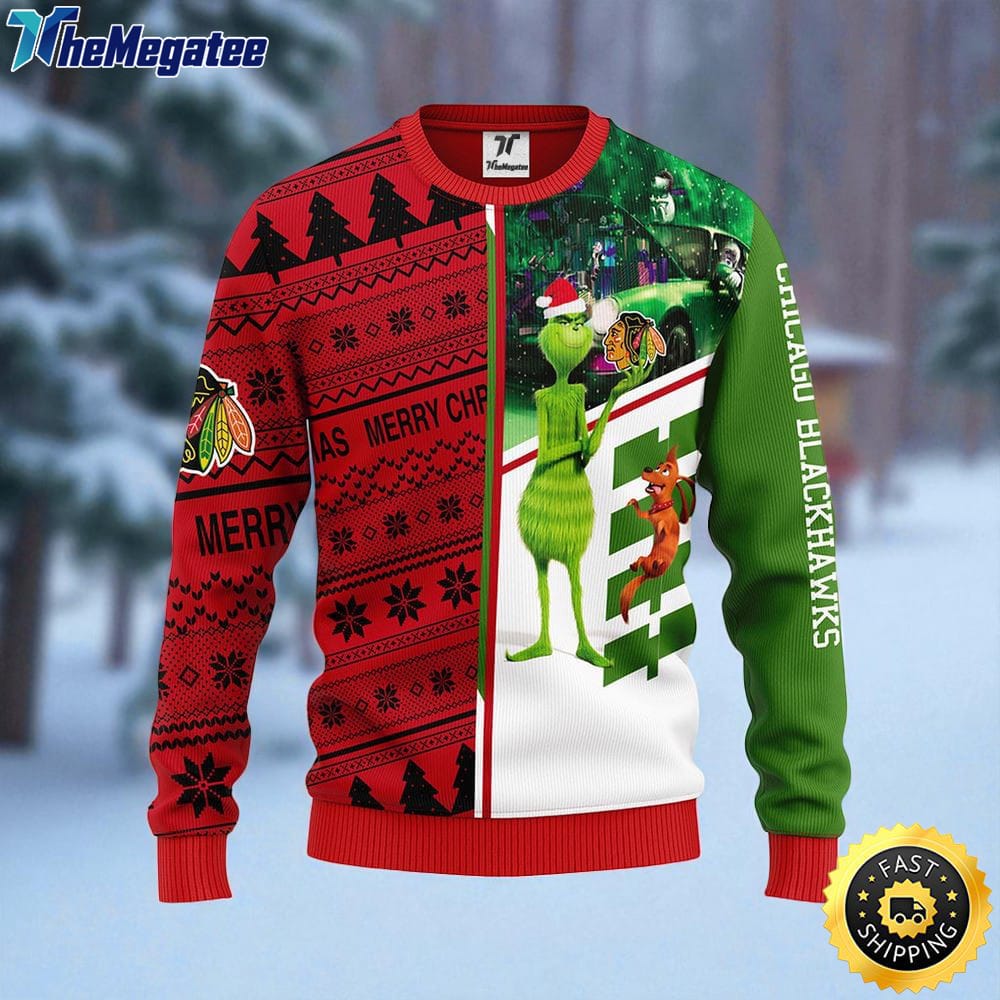 NHL Chicago Blackhawks Ugly Sweater Grinch And Scooby doo Ugly Christmas Sweater For Fans Details
