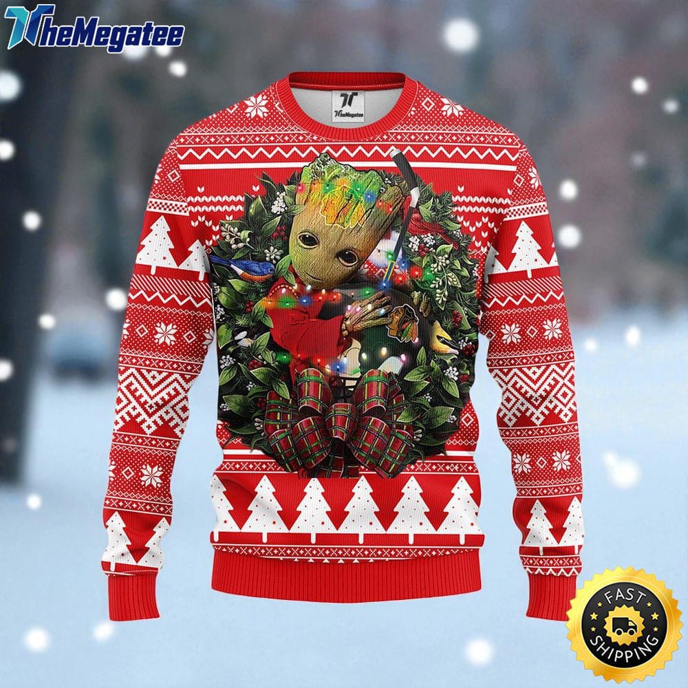 NHL Chicago Blackhawks Ugly Sweater Groot Christmas Sweater For Fans Details