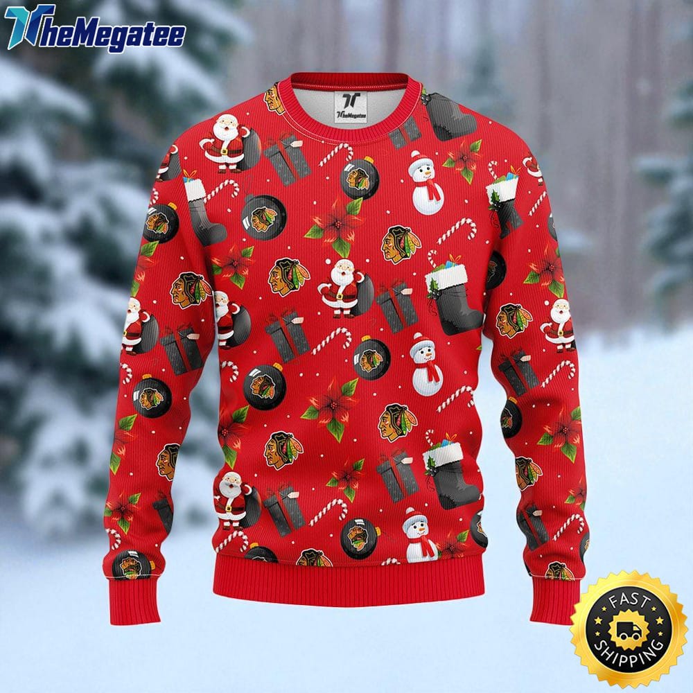 NHL Chicago Blackhawks Ugly Sweater Santa Claus Snowman Ugly Christmas Sweater For Fans