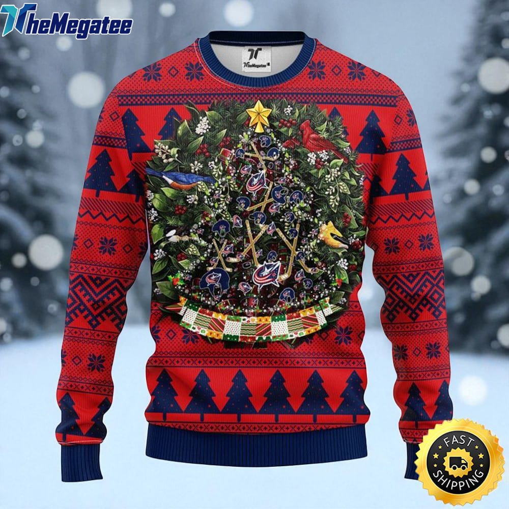NHL Columbus Blue Jackets Ugly Christmas Sweater Ball Pine Tree, NFL Christmas Sweater