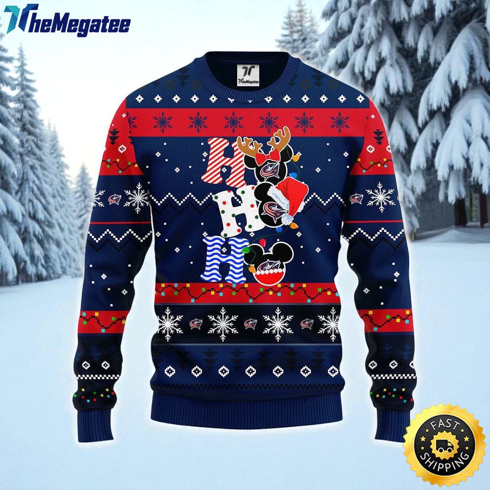 NHL Columbus Blue Jackets Ugly Sweater Hohoho Mickey Ugly Christmas Sweater For Fans Details