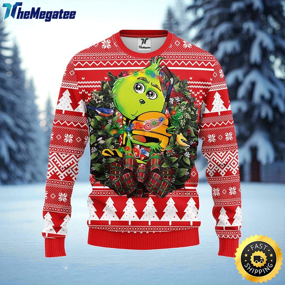 NHL Detroit Red Wings Ugly Sweater Grinch Hug Ugly Christmas Sweater For Fans Details
