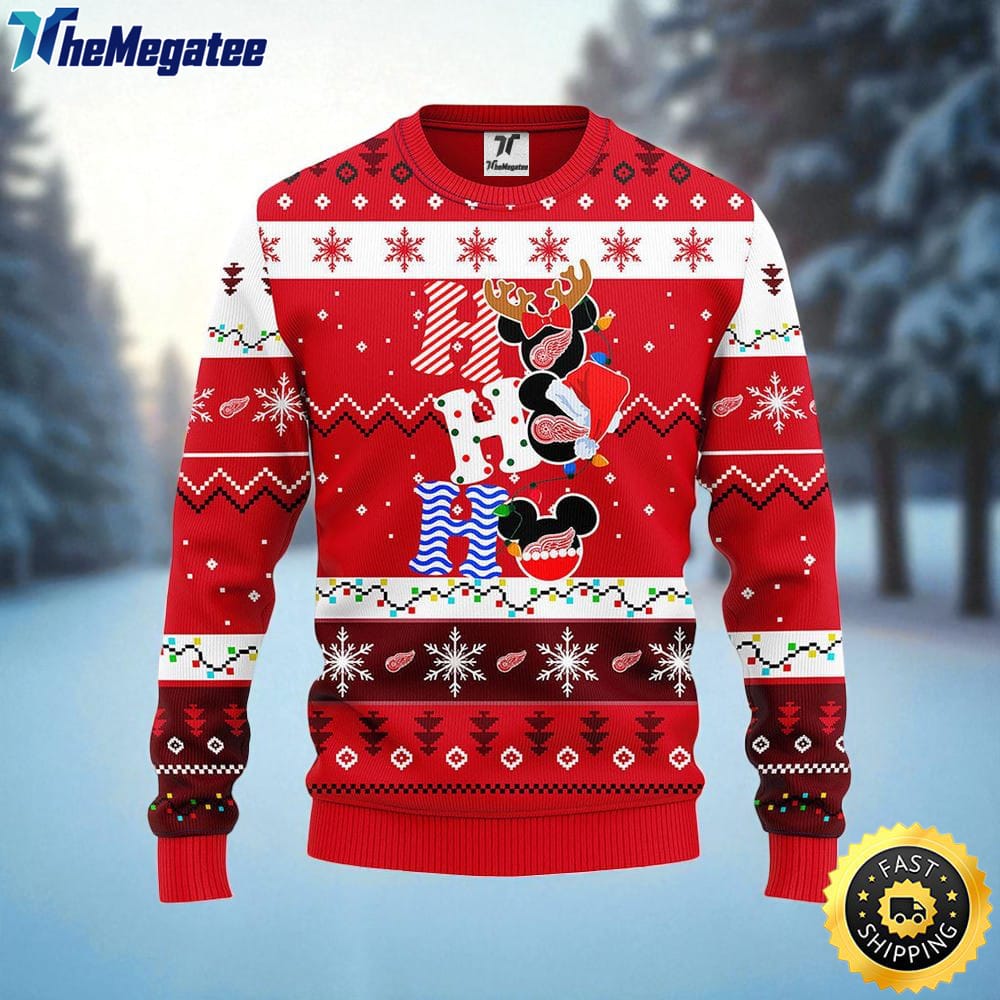 NHL Detroit Red Wings Ugly Sweater Hohoho Mickey Ugly Christmas Sweater For Fans Details