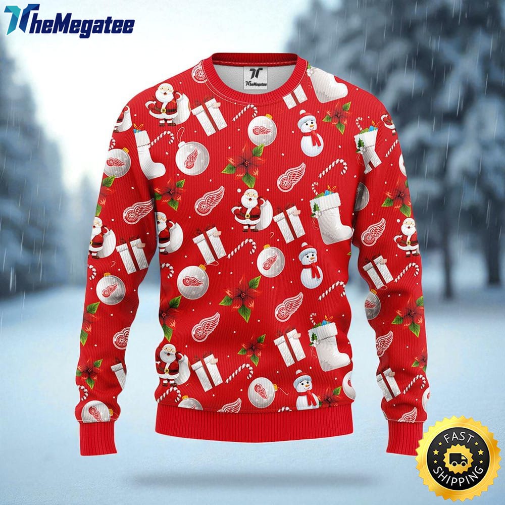 NHL Detroit Red Wings Ugly Sweater Santa Claus Snowman Ugly Christmas Sweater For Fans Details