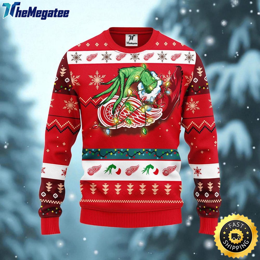 NHL Detroit Red Wings Ugly Sweater The Hand Of Grinch Ugly Christmas Sweater For Fans