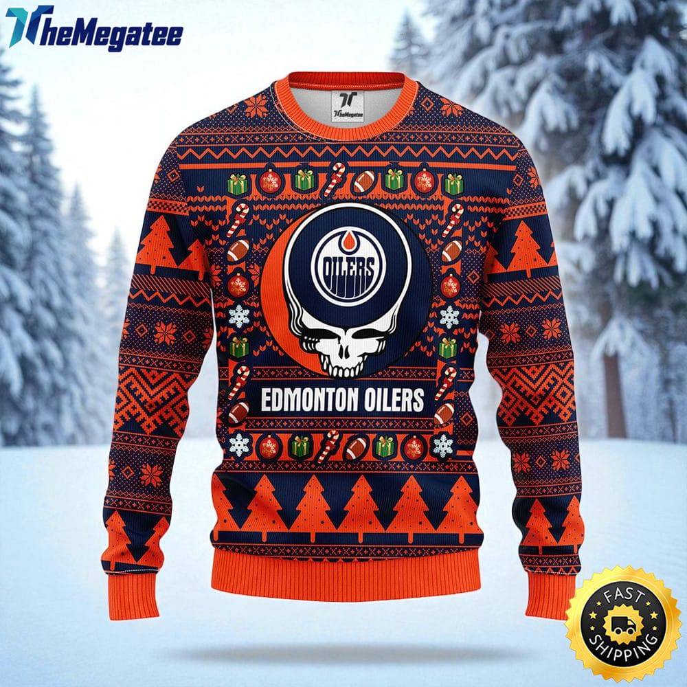 NHL Edmonton Oilers Ugly Sweater Grateful Dead Ugly Christmas Fleece Sweater For Fans Details