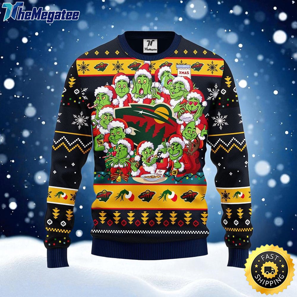 NHL Minnesota Wild Ugly Sweater 12 Expressions Of Grinch During The Christmas Season Sweater For Fans Details