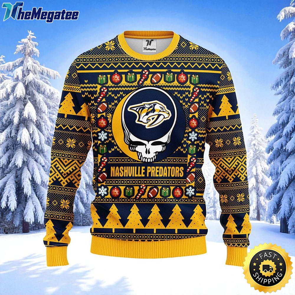 NHL Nashville Predators Ugly Sweater Grateful Dead Ugly Christmas Fleece Sweater For Fans Details