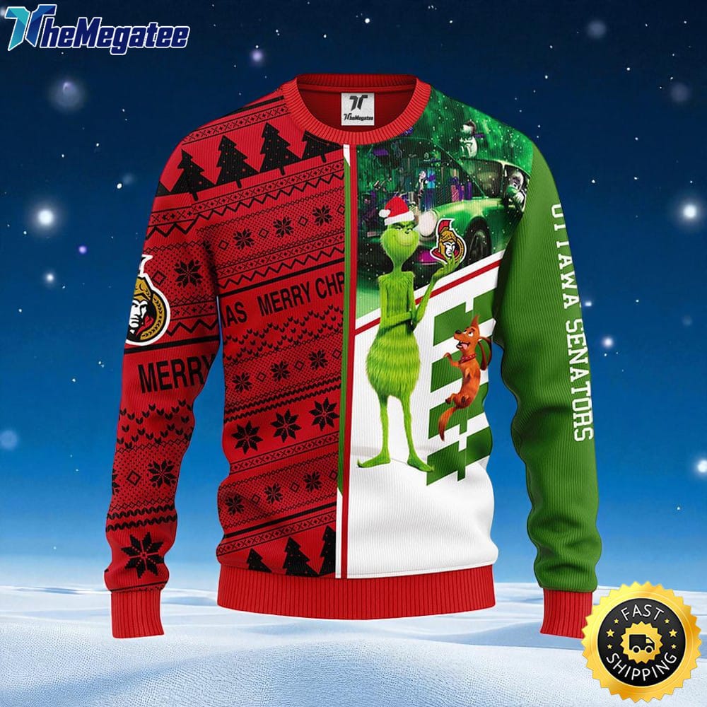 NHL Ottawa Senators Ugly Sweater Grinch And Scooby doo Ugly Christmas Sweater For Fans Details