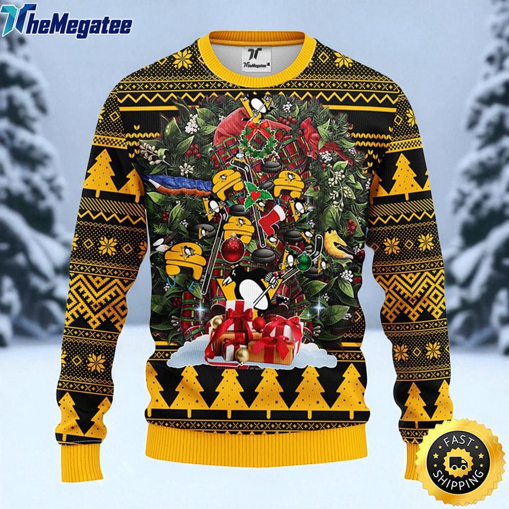 NHL Pittsburgh Penguins Ugly Christmas Sweater Ball Pine Tree, NFL Christmas Sweater