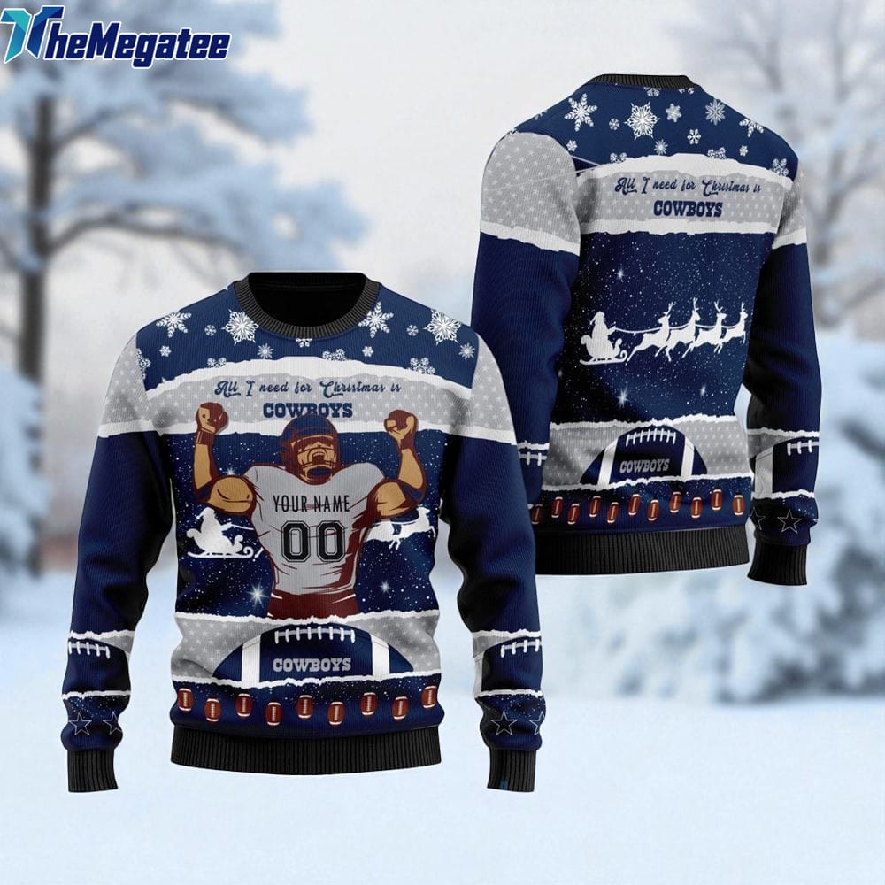 Personalized NFL Dallas Cowboys All I Need For Christmas Ugly Christmas Sweater Perfect Gift For Football Fans Details