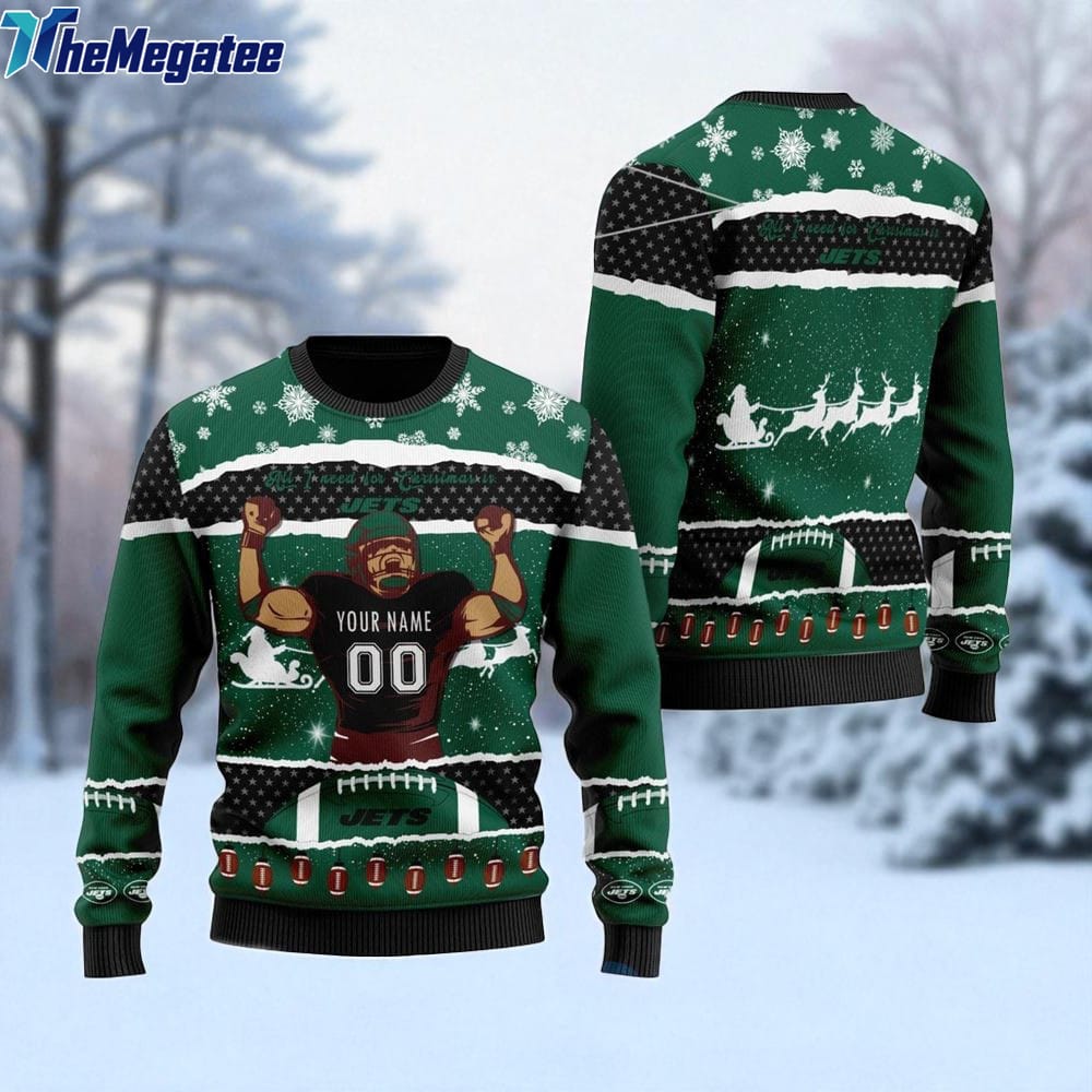 Personalized NFL New York Jets All I Need For Christmas Ugly Christmas Sweater Perfect Gift For Football Fans Details