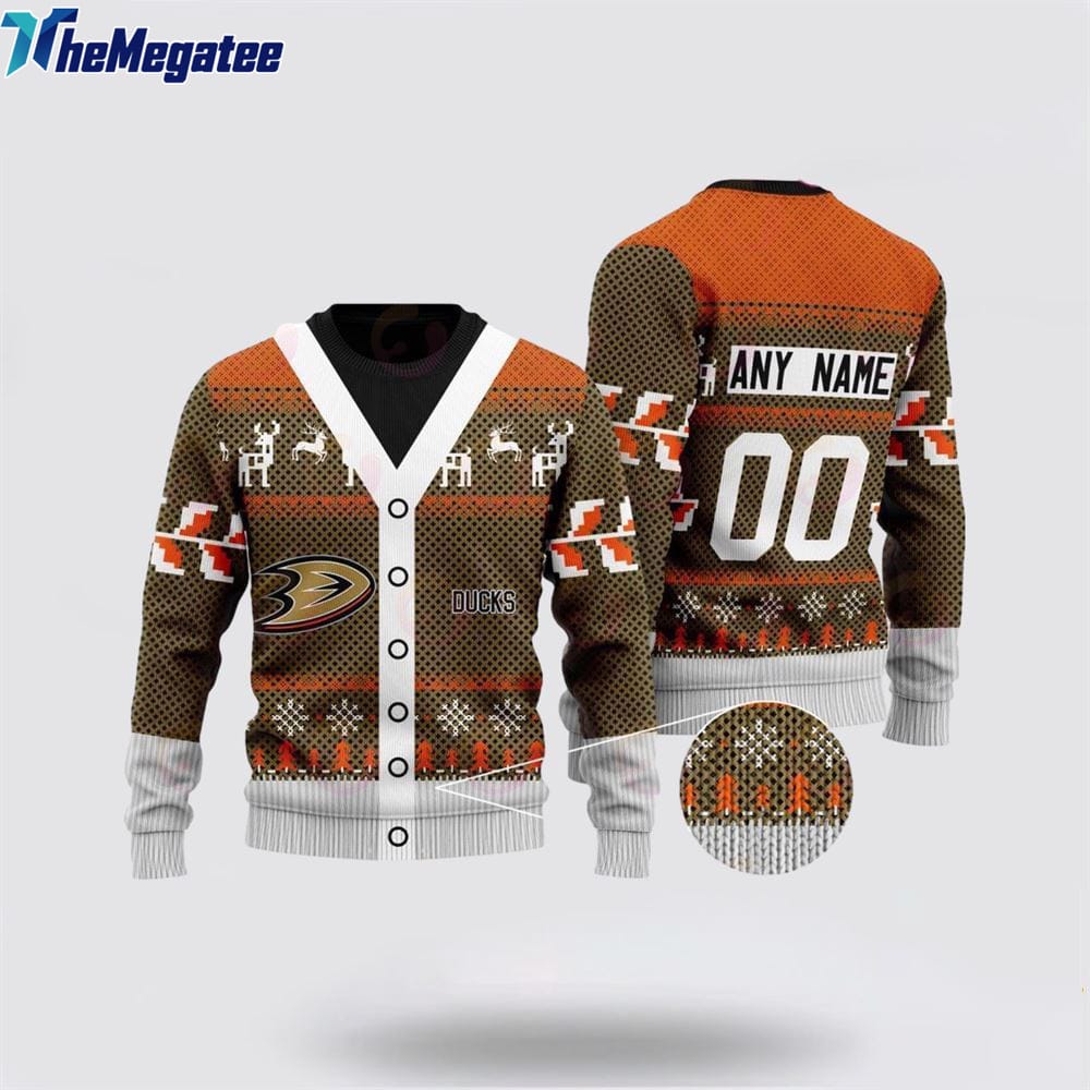 Personalized NHL Anaheim Ducks Elk Pattern Ugly Christmas Sweater, Christmas Gift For Hockey Fans Details