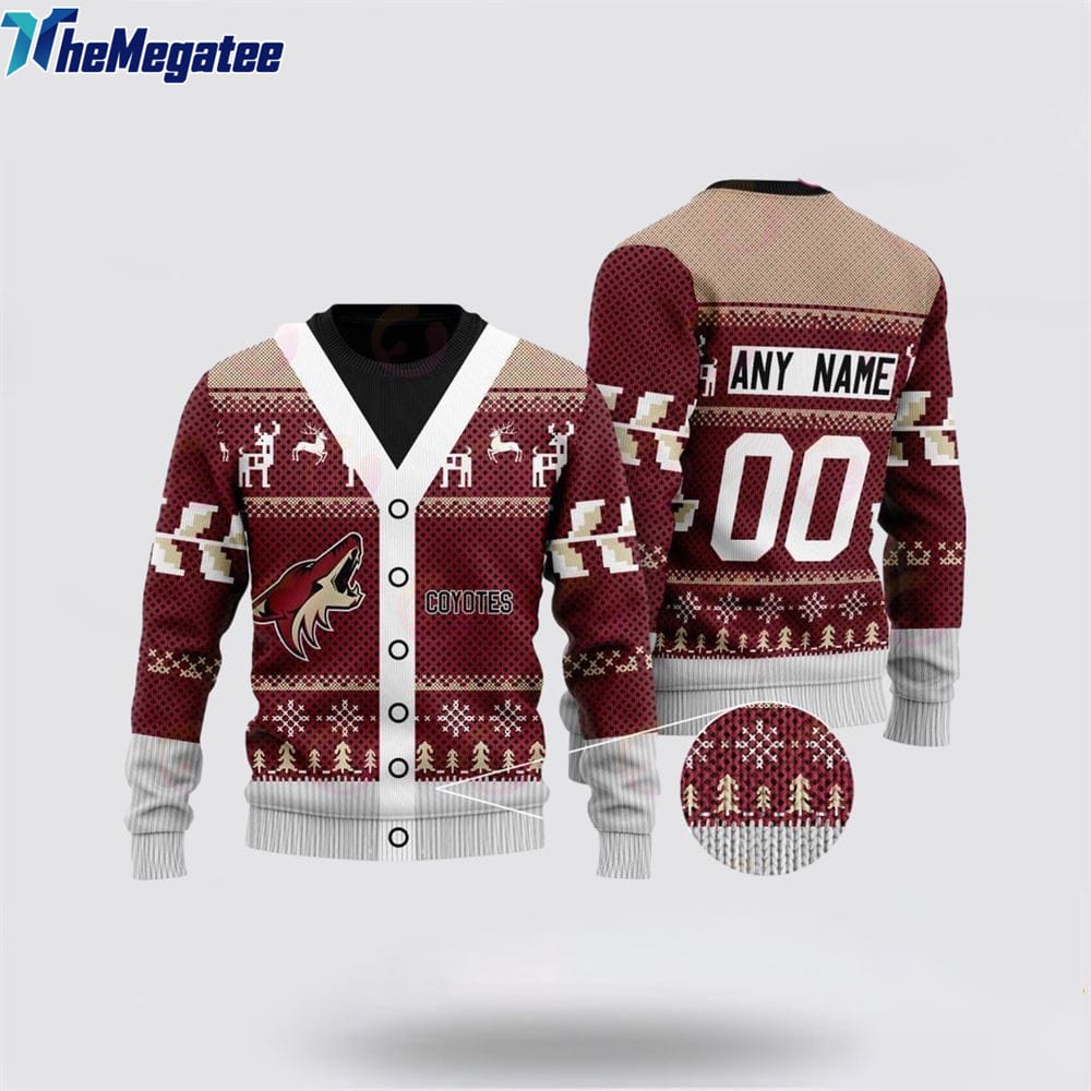 Get ready to show off your team spirit and holiday cheer with our one-of-a-kind NHL Arizona Coyotes Elk Pattern Ugly Christmas Sweater! This festive sweater is perfect for any hockey fan looking to celebrate the season in style. Made with high-quality materials, this sweater features a playful elk pattern inspired by the Arizona Coyotes team logo. The best part? You can personalize this sweater with your name or a loved one's for a truly unique gift that will be treasured for years to come. Whether you're heading to a holiday party or watching the game at home, this sweater is sure to be a hit with any hockey enthusiast. Don't miss out on this must-have Christmas gift!