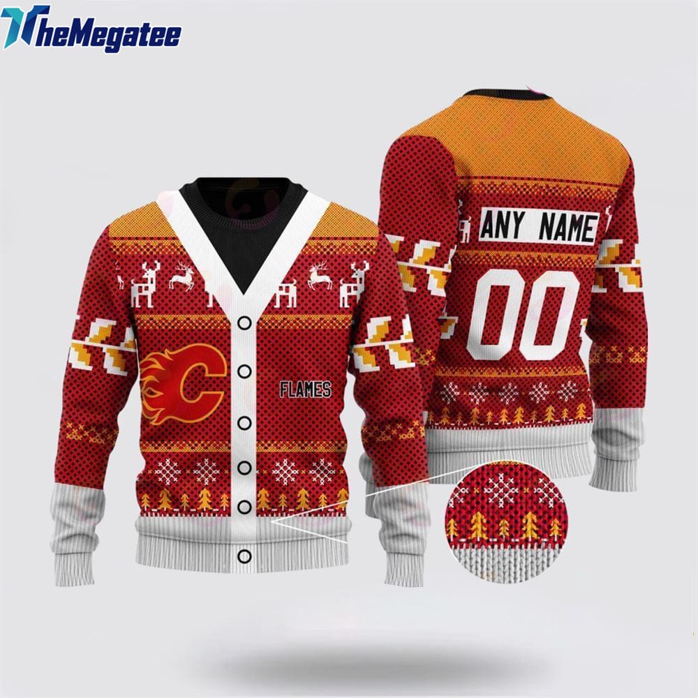Personalized NHL Calgary Flames Elk Pattern Ugly Christmas Sweater, Christmas Gift For Hockey Fans Details