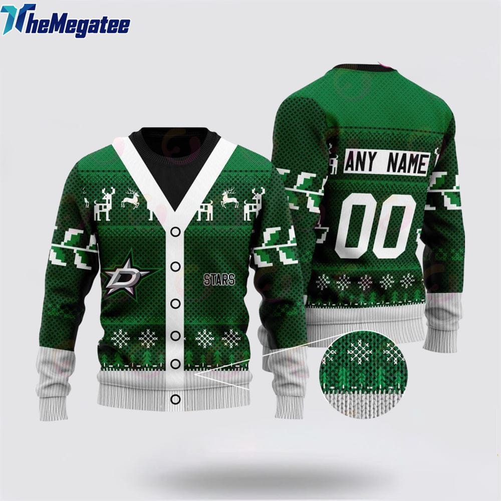 Personalized NHL Dallas Stars Elk Pattern Ugly Christmas Sweater, Christmas Gift For Hockey Fans Details