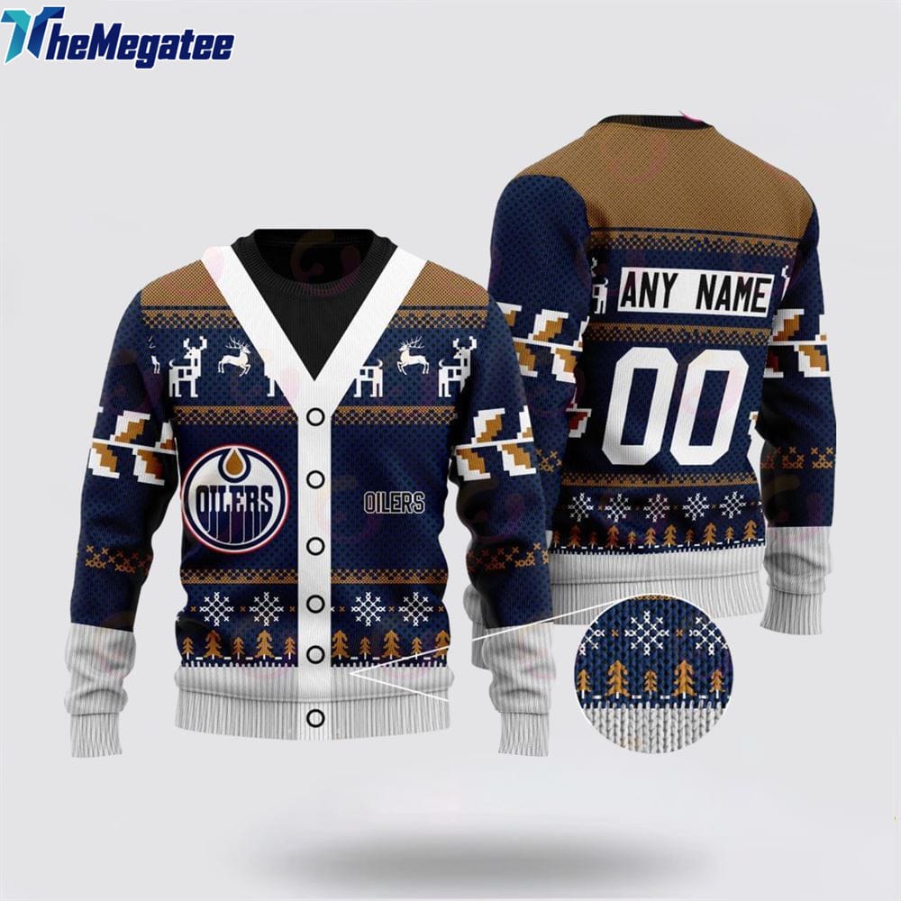 Personalized NHL Edmonton Oilers Elk Pattern Ugly Christmas Sweater, Christmas Gift For Hockey Fans Details