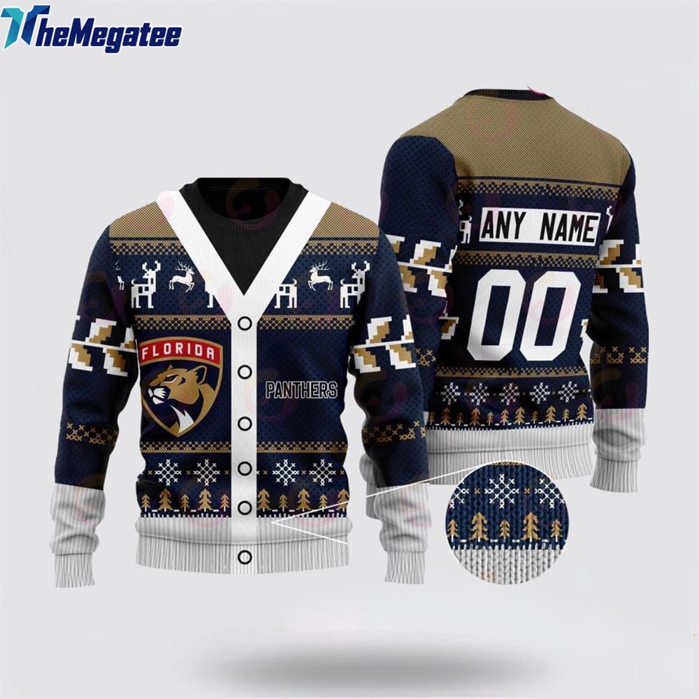 Personalized NHL Florida Panthers Elk Pattern Ugly Christmas Sweater, Christmas Gift For Hockey Fans Details