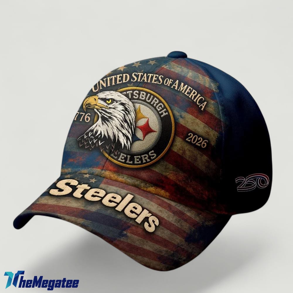 As we celebrate the 250th anniversary of America, what better way to show your patriotism and love for football than with this exclusive Pittsburgh Steelers cap? This premium NFL accessory is the perfect blend of style and history, featuring the iconic team logo alongside patriotic elements that pay homage to our nation's rich heritage. Crafted with the finest materials and attention to detail, this cap is not only a stylish addition to your game day outfit, but also a meaningful keepsake to commemorate this special milestone. Join us in celebrating America's history and the Steelers' legacy with this limited edition cap that is sure to make a statement wherever you go.